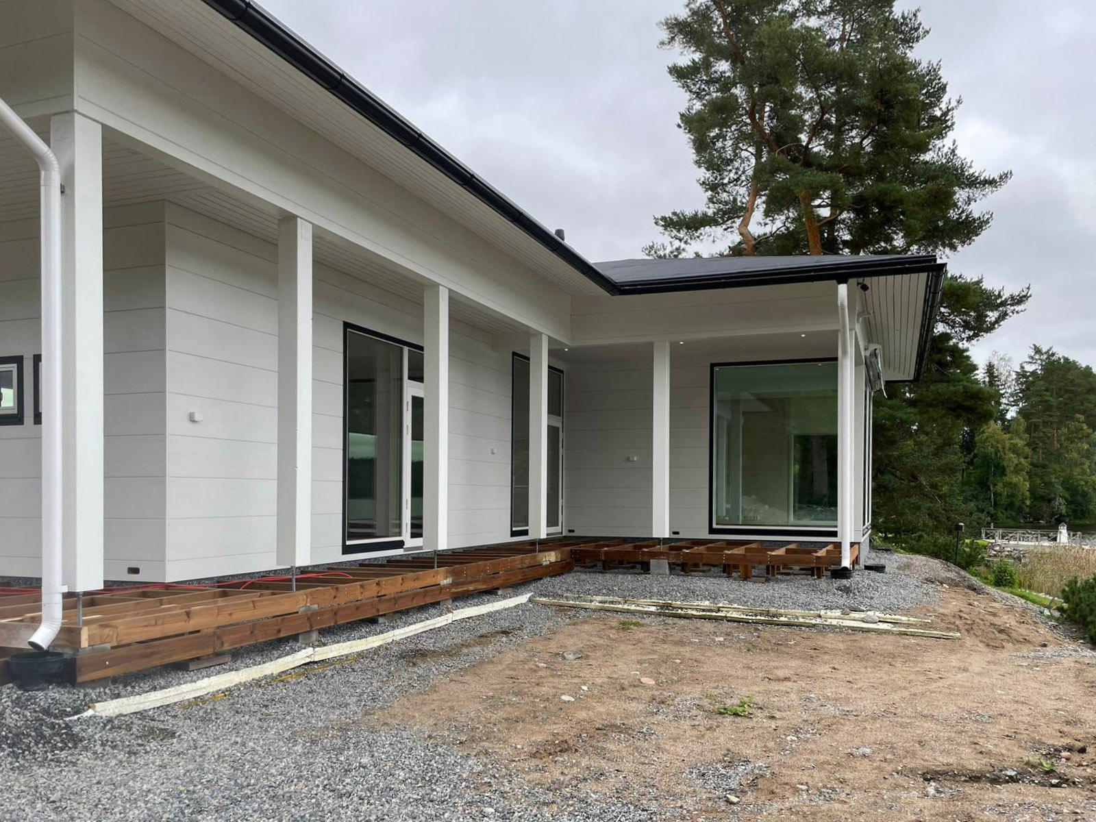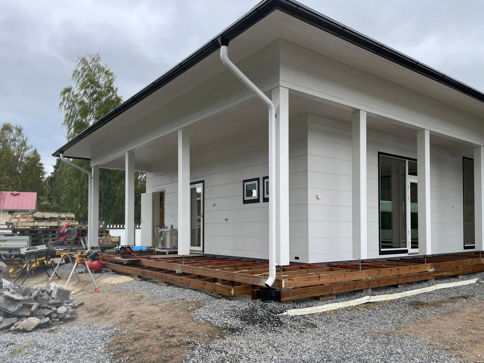 Tarjoamme asiakkaalle kokonaisuuden — tarvittaessa aina tontin etsimisestä ja siihen liittyvästä neuvonnasta alkaen. Asiakkaan tarpeita vastaava talo suunnitellaan ja rakennetaan pohjan kaivamisesta viimeisen listan paikoilleen laittamiseen asti.